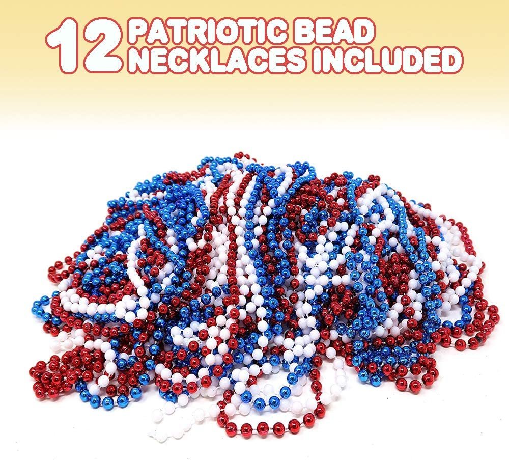 Artcreativity Patriotic Beads Necklaces Pack Of 12 Red White And Art Creativity